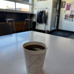 I finally stopped in to this charming coffee shop. The service is delightful. The ambiance is great. I was there a little before closing so I don't know if it's always as empty as it was. I've been a bit of a coffee connoisseur since the 1970's. My husband and I used to go to one of the very first coffee/tea shops in NYC. We experimented with so many different beans. I tell this story because in all the years I've been buying beans I've never had any that resemble what I got at Magpie. The beans are tiny and have no sheen. There was little aroma when I opened the bag and when I brewed the coffee. As for flavor, it's not bad but it's very mild which is not what I'm used to. The woman behind the counter told me all their roasts are medium to light and it was my choice to try something new. The bag has zero info on it. Maybe there was a card in the shop which offers details on what beans are used, whether they are organic and responsibly sourced. This info is usually provided by the roaster on the bag or in the shop. I'm disappointed with the lack of info. If I could give Magpie a rating of 3.5 I would. I'm giving them a 4 because the pluses outweigh the minuses. But I don't think I will be going back.